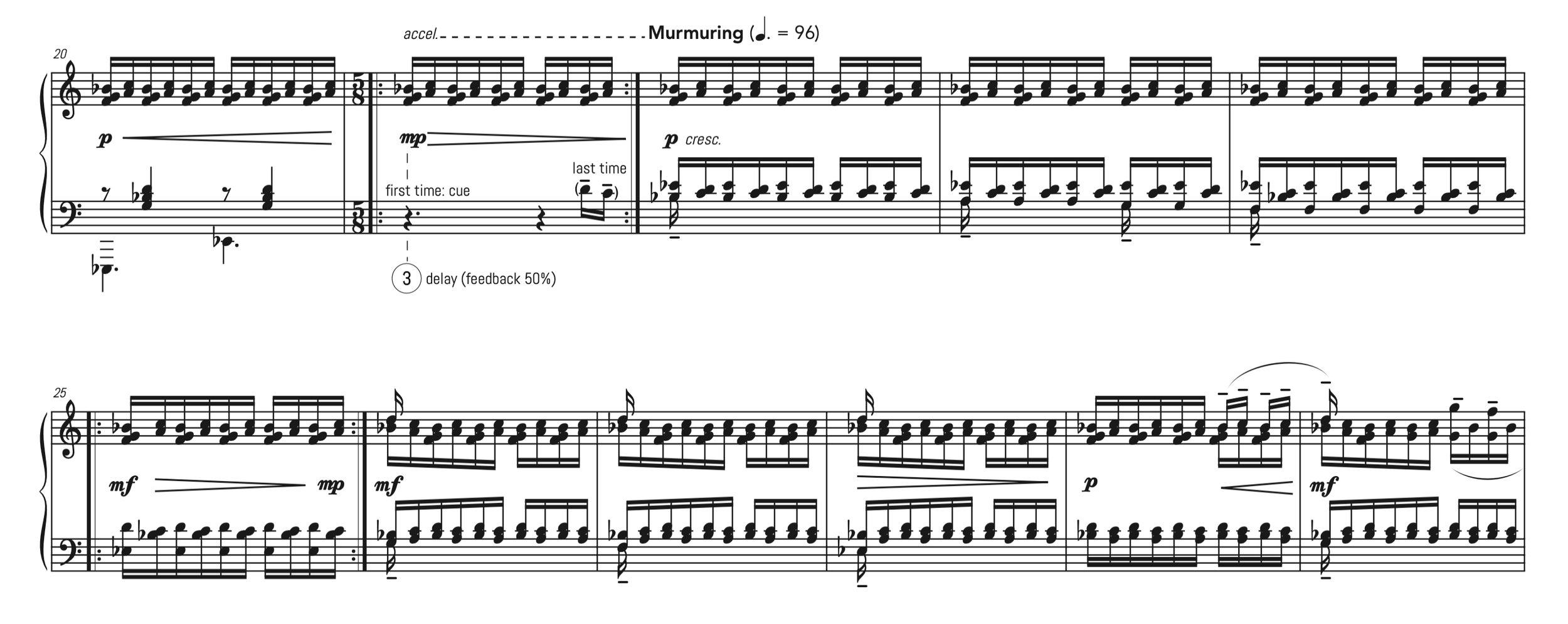Electronic Études are moments of reflection. Each piece grows from the seed of an improvisation, with a focus on a specific aspect of live electronics: turning reverberation into a sonorous wall, distorting field recordings into textures beyond recognition, looping melodic delays, and scattering granulation. They blur the boundaries between real and imaged, spinning webs of acoustic and synthesized sounds.